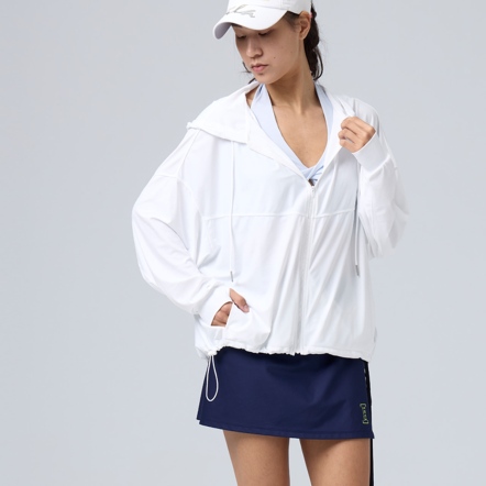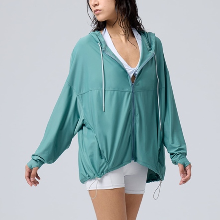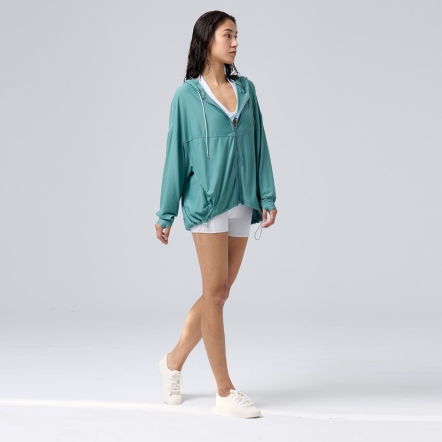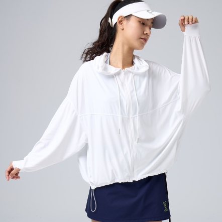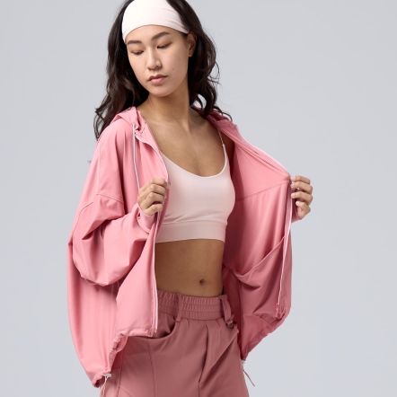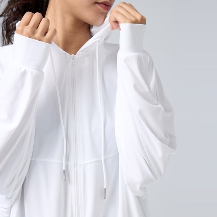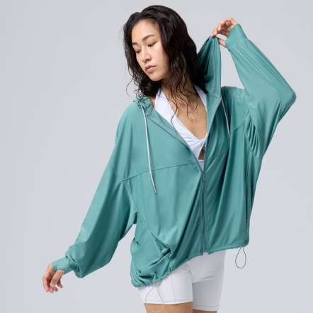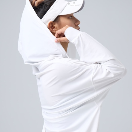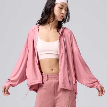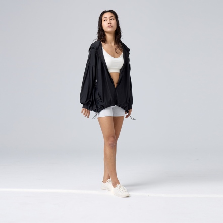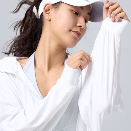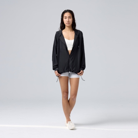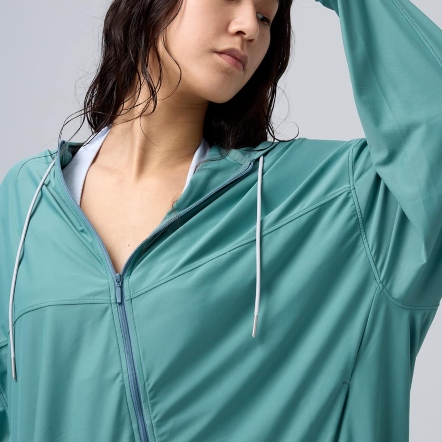 以修身落肩袖型設計修飾手臂線條,搭配胸前橫向切線與3D立體剪裁,展現俐落身型輪廓;融入拇指洞、可調節連帽等貼心設計,強化活動自由度與防曬覆蓋範圍;兩側隱形側開口袋實用,提高整體機能;下擺可調節抽繩設計,自由掌控鬆緊度與造型層次,滿足動靜皆宜的穿搭需求。